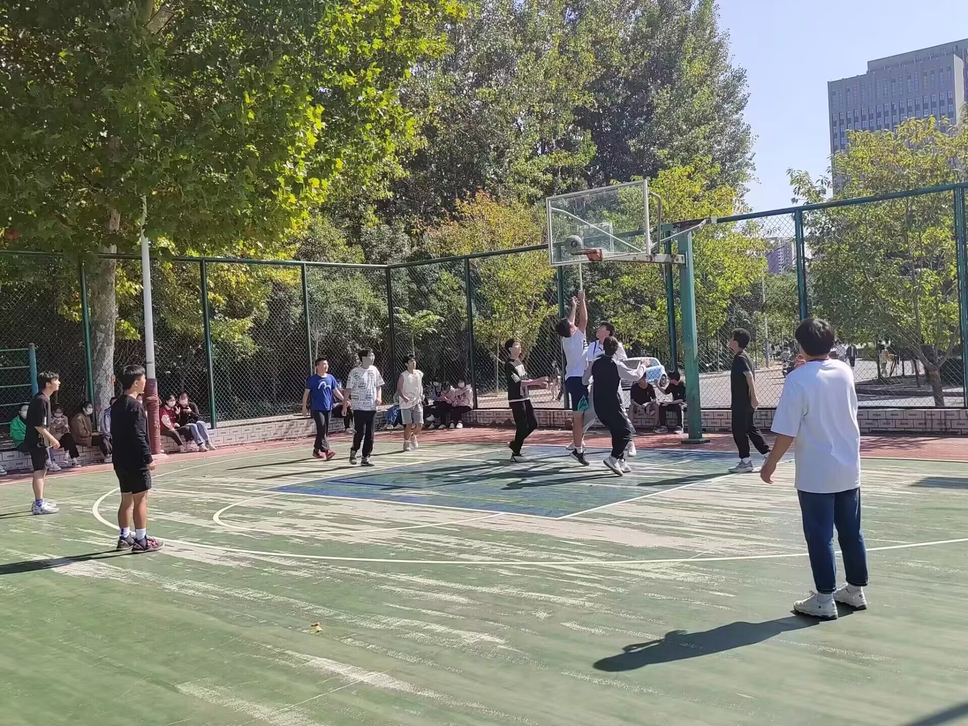 本次篮球赛分为男子组和女子组,男子分为四组,女子分为两组。比赛伊始,队员们信心十足,现场的气氛激烈紧张,令人振奋。随着哨声的响起,双方队员迅速进入状态,队员们的抢球、断球、防守、进攻、传球、配合,展现了队员们的活力,彰显了队员们不惧困难,顽强拼搏的斗志。同时观众们的呼喊,使球场的气氛更加活跃。我院篮球队的队员们本着“输球不输斗志”“输球不输心情”“输球不输友谊”的原则,在赛场上尽情的挥洒着汗水,赛出了他们的风格。一次次的进球,带动着观众们的激情,展现出队员们的能力。现场的氛围也更加的热烈,观众们一个个都摇旗呐喊,为我院的队员们加油鼓劲。随着裁判哨声的响起,本次比赛圆满结束。