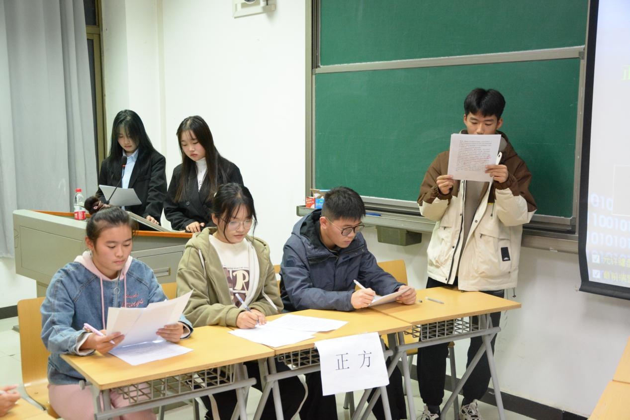 为展现新生辩论的风采,我院于11月10日7:00-8:30在E-506举行的第二次辩论会,此次辩论赛由“新人”主辩,队长席晴,张迎乐等老队员为评委。辩论赛共计两场,主题分别为“讨好型人格是否为一种缺陷”和“当了很久的朋友能不能成为恋人”。双方就此展开激烈争论。