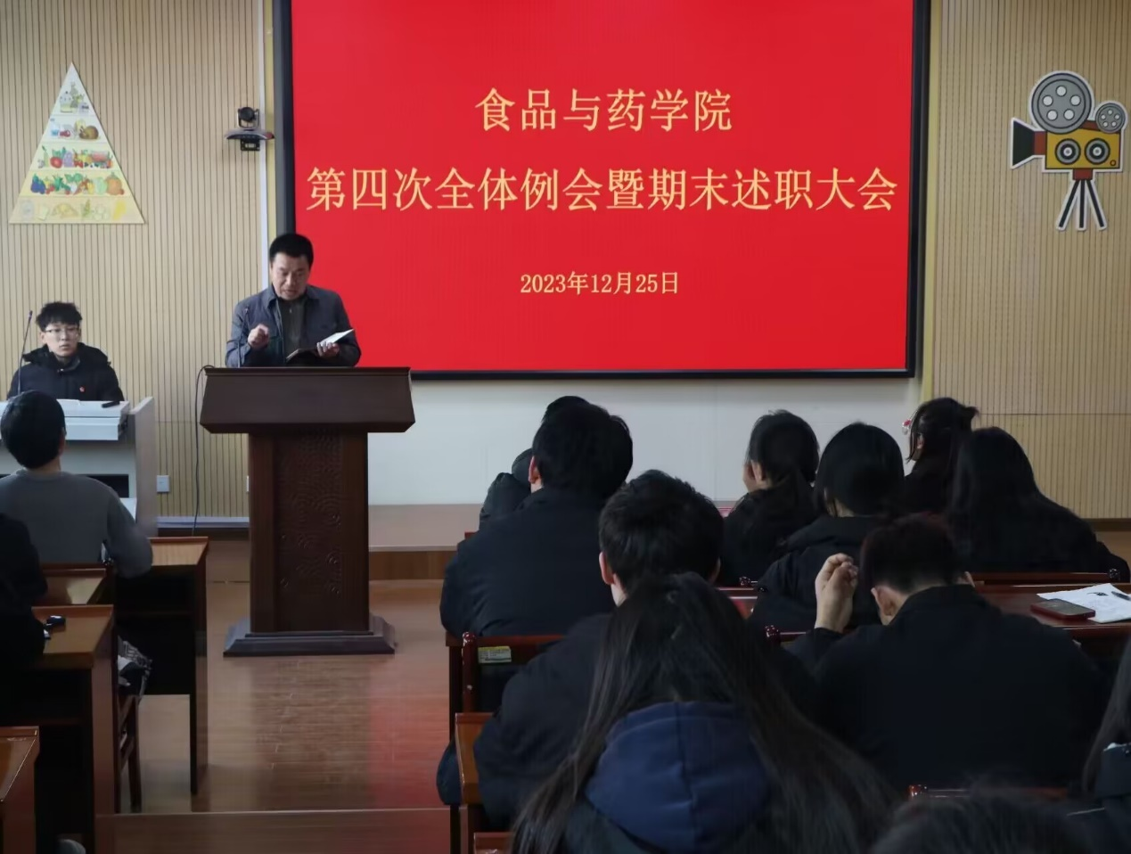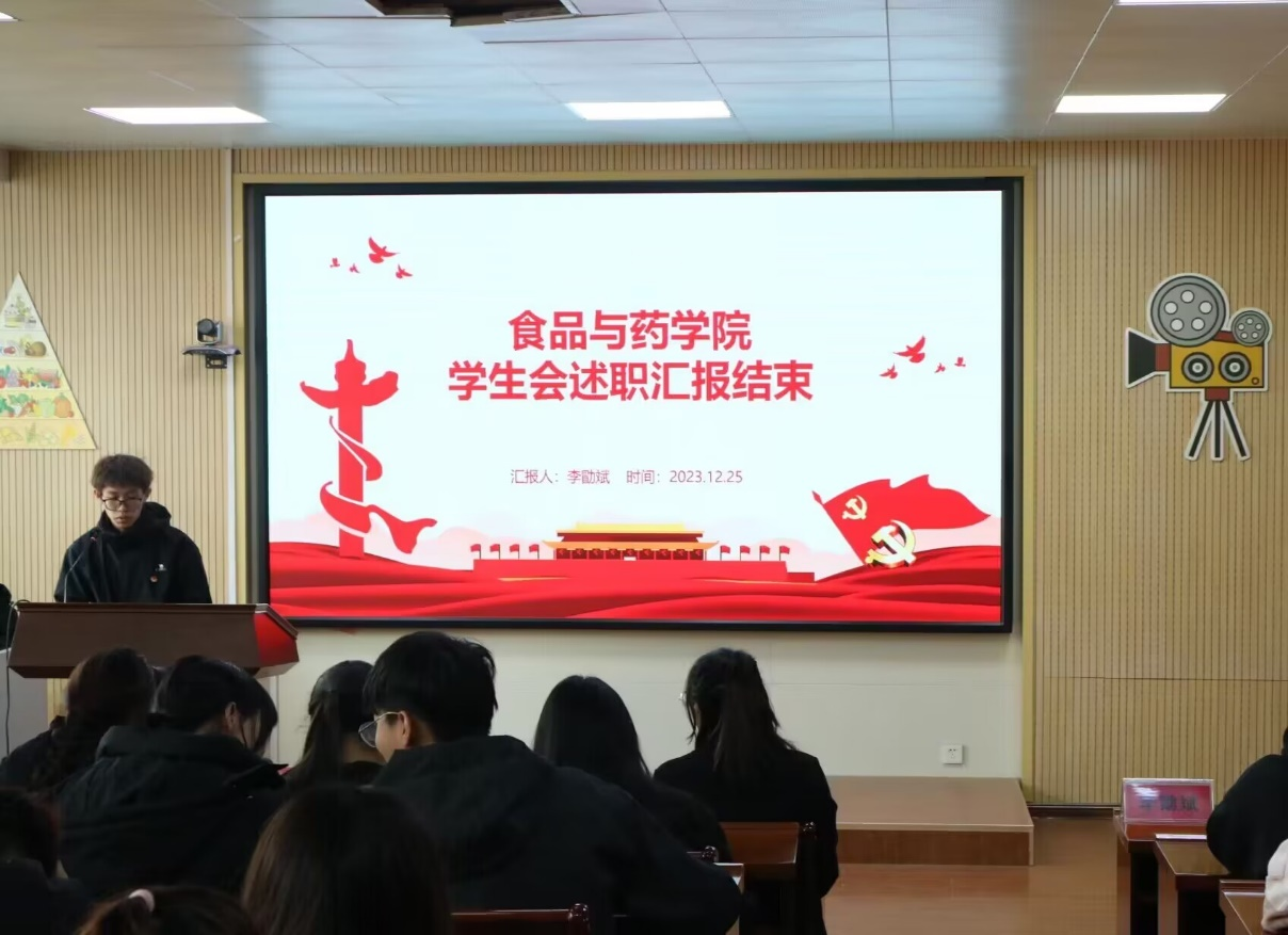 为总结经验,进一步做好学生会的各项工作,发挥学生会应有的服务功能与服务水平。2023年12月25日下午13:00,我院学生会在食药楼N204召开食品与药学院第四次全体例会暨期末述职大会。出席本次会议的有党委副书记吕欣,团委老师韩彦航,学生会全体成员,青协、食协和生物科创社负责人以及22、23级班长、团支书。