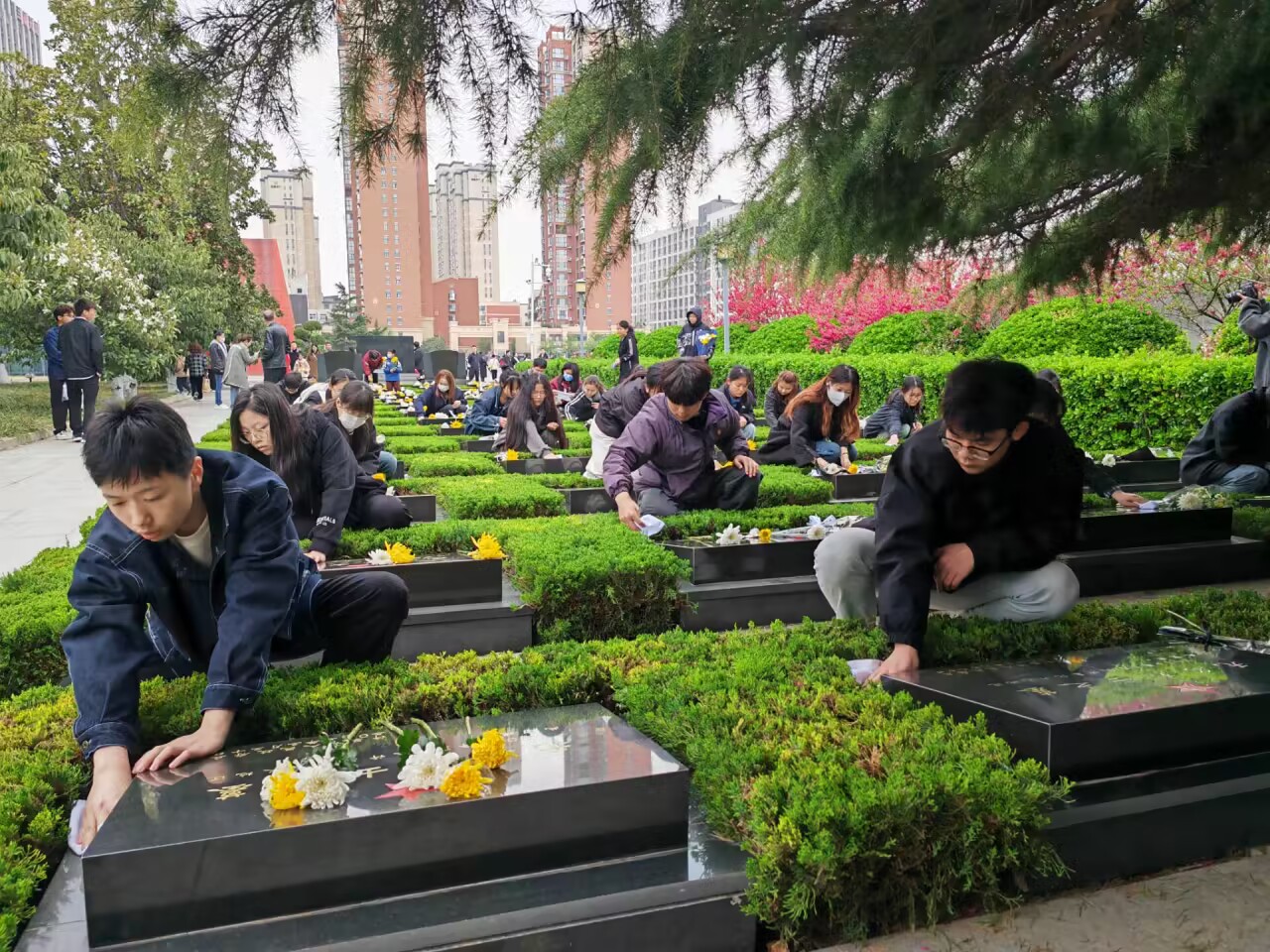 为继承清明节的传统习俗,更好地让当代大学生接受革命传统教育,培养爱国主义精神,我院于2024年4月4日上午10:00在许昌市烈士陵园举办以“缅怀革命先烈,传承笃学铸魂”为主题的清明节扫墓活动。参加本次活动的同学在我院学生会生活部成员的带领下一起前往许昌市烈士陵园。