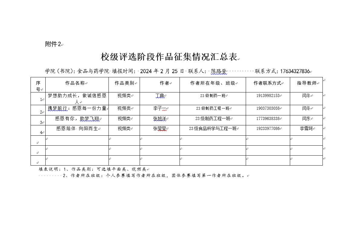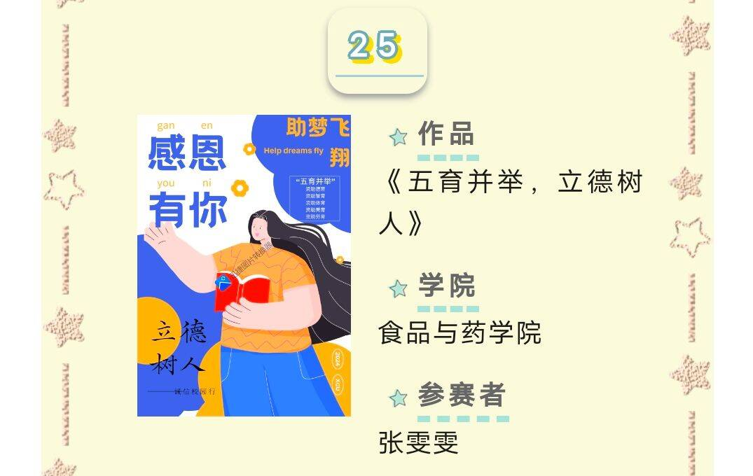 活动开始之时前,我院生活部召开生活委员会议,让生活委员深刻了解该活动的具体流程以及活动举办的重大意义,并及时向班级学生进行宣讲,通过深入分析存在的问题和漏洞,并发布了本次活动的通知和评审标准为后续活动的开展了准备工作。大赛自启动以来,本院同学的积极响应和广泛参与。同学们围绕“树诚信自强风 做励志感恩人”的主题,结合自身经历和身边的榜样事迹,积极参与踊跃投稿。参赛作品形式多样内容丰富,聚焦学生受助脱困成长蜕变、诚信感恩的典型事迹,重点宣传了国家的学生资助政策体系,体现党和政府教育资助政策温度,充分展示了同学们对大赛主题的深刻理解和独特创意,经过院级初选我院图选出27个平面类作品4个视频类作品进想参加校级比赛以下是校级比赛名单。