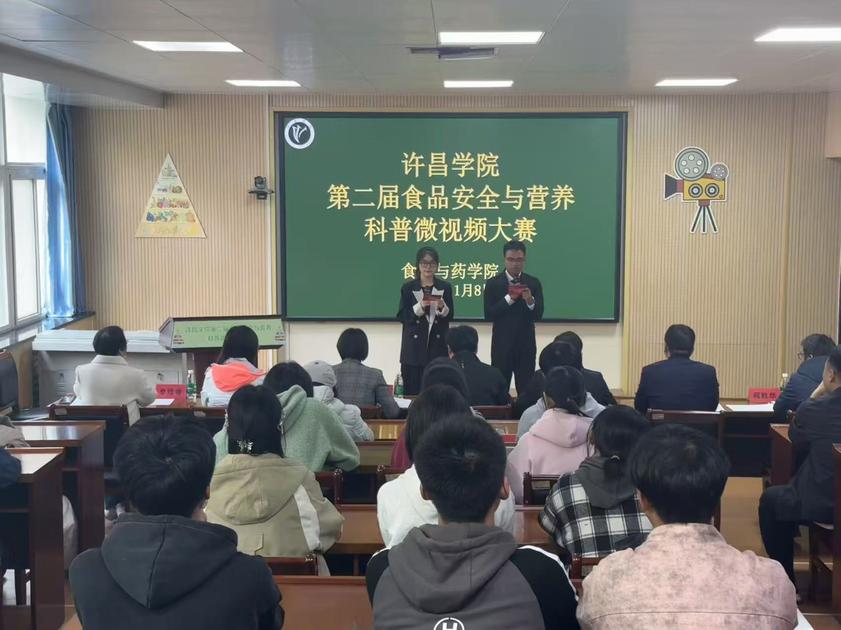 11月8日,许昌学院第二届食品安全与营养科普微视频大赛暨2024年河南省大学生食品安全与营养科普微视频大赛许昌学院选拔赛在食药楼N204隆重举行。实验室与设备管理中心主任刘雪锋、校团委副书记郗磊磊、院党委书记曹玉松、院长王德国、实验室与设备管理中心影视资源科梁燕、副教授李培睿,何胜华等领导老师担任大赛评委,各年级学生代表到场观摩。