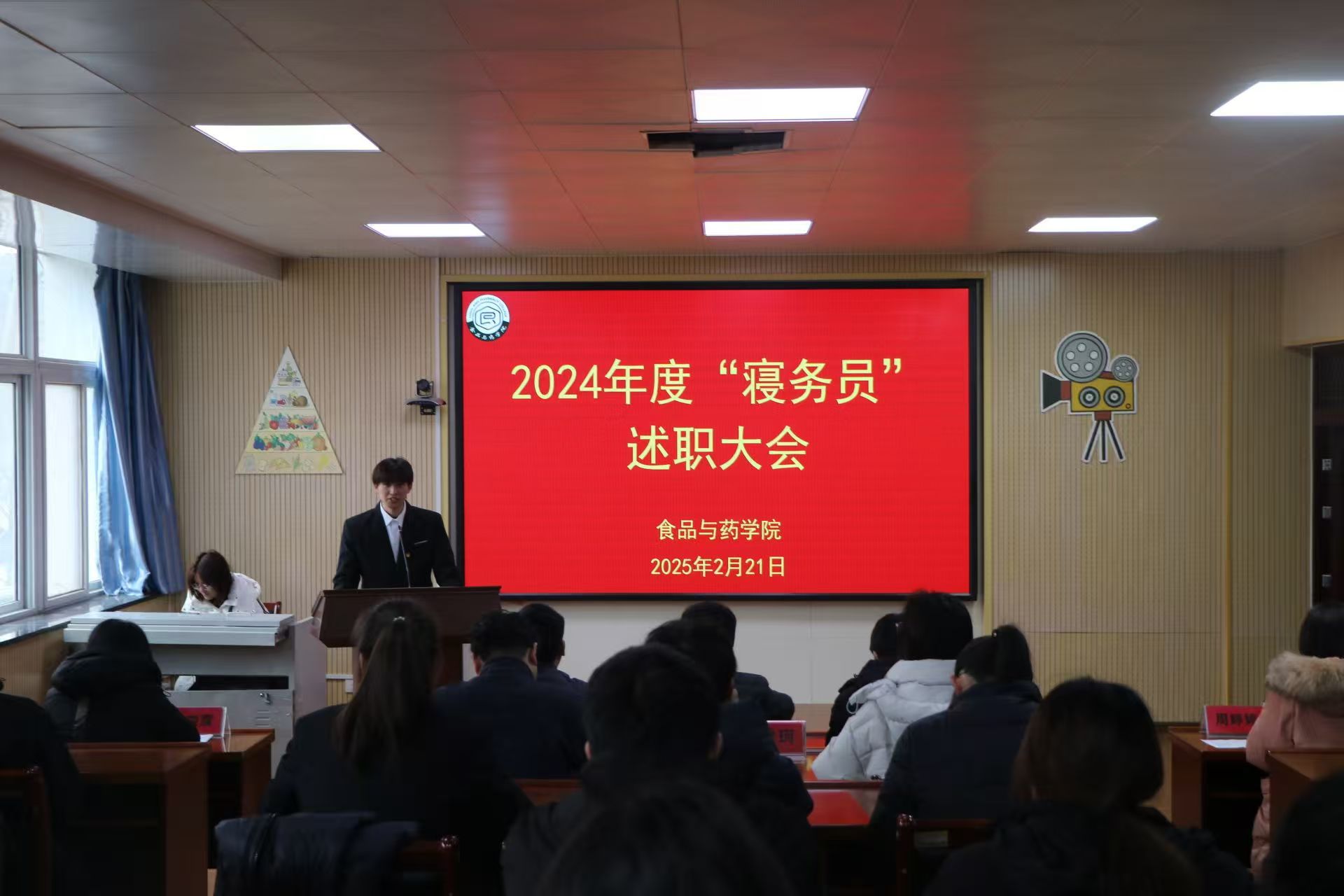 为总结表彰“寝务员”工作,分享经验成果,更好的推进学院学生工作,我院于2025年2月21日在食药院204召开24级“寝务员”总结表彰大会。出席本次会议的有院党委副书记吕欣、生物制药系主任张良、院团委副书记韩彦航、学工办副主任杨晓露、24级班导师崔朝辉老师,22级辅导员周婷婷老师、23级辅导员李雪珂老师、24级辅导员刘艺芳、王曼琪老师和部分学生代表。