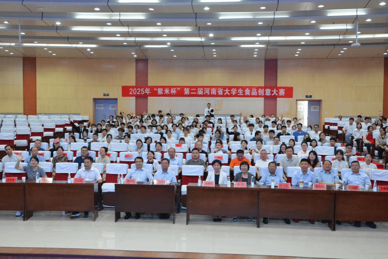 2025年6月13日,由河南省食品科学技术学会、许昌学院和河南紫米食业有限公司共同举办的2025年“紫米杯”河南省大学生食品创意大赛在我校学术报告厅成功举办。副校长赵艳敏、河南省食品科学技术学会副理事长兼秘书长王瑞国、河南紫米食业有限公司董事长王志磊出席活动。