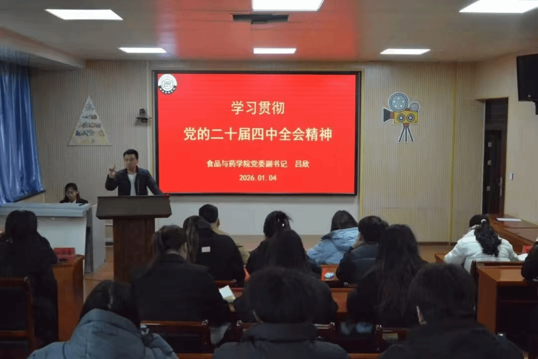 为深入学习贯彻党的二十届四中全会精神,落实校团委相关工作要求,近日,食品与药学院举办全会精神示范宣讲活动。学院党委副书记吕欣主讲,学院团委成员及团员代表参加。