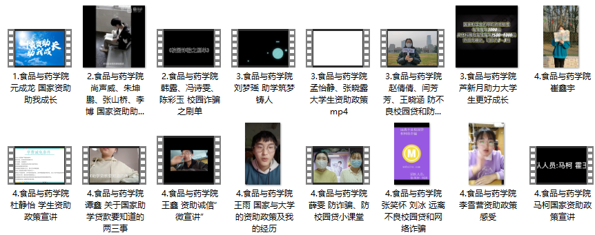 本次活动作品通过微视频的形式宣讲国家和学校资助政策、讲解假期送政策下乡和送政策回母校活动开展情况、介绍担任资助宣传大使心得感受、在国家资助体系下顺利求学逐梦成长的故事、防不良校园贷和防诈骗等主题。经过评委老师的认真评价最终选出优秀作品。分别是:一等奖-国家资助助我成长,二等奖-校园诈骗之刷单、国家资助助力梦想,三等奖-大学生资助政策、助学筑梦铸人、助力大学生更好成长、防不良校园贷和防诈骗,我院将为以上获奖作品的作者颁发证书和奖品以资鼓励。