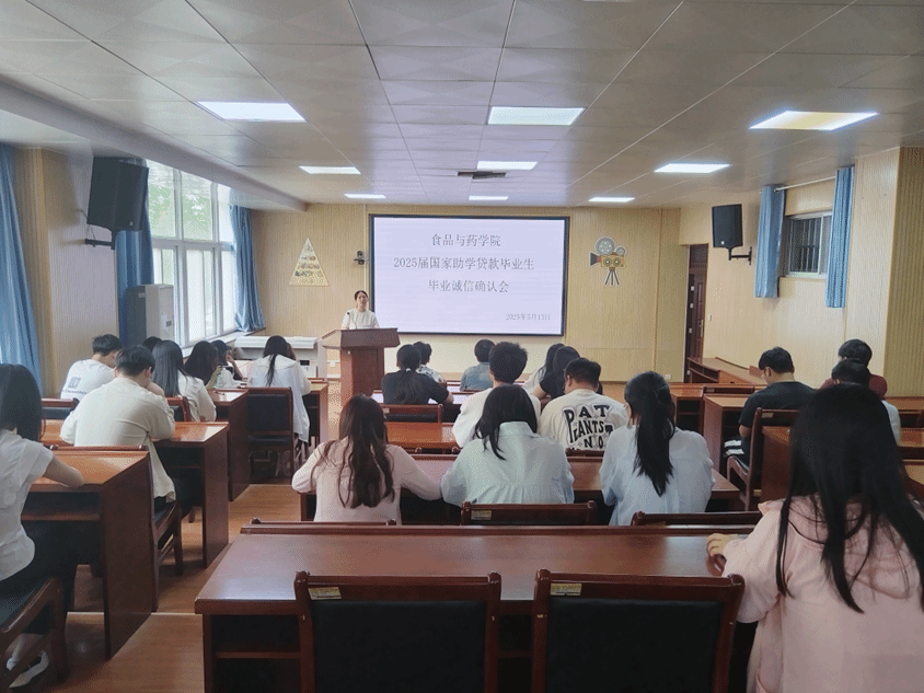2025年5月13日,我院于食药楼204报告厅召开2025届国家助学贷款毕业生诚信确认会,本次会议由我院资助专干王曼琪老师主持,全体申请该贷款的2025届毕业生参会。