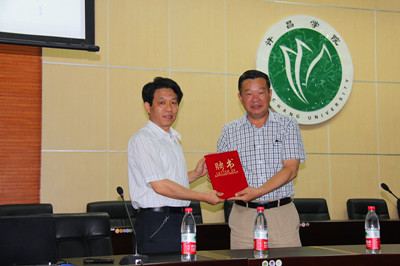 张建军副院长对韩东海教授的到来表示热烈欢迎,并向韩东海教授颁发我校“客座教授”聘书。