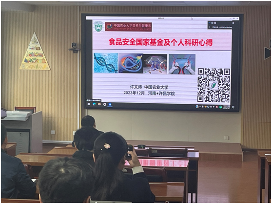 为准备2024年度国家自然科学基金项目的申请,食品与药学院于2023年12月7日下午有幸邀请到中国农业大学的资深学者许文涛教授,许教授作了题为《食品安全国家基金及个人科研心得》的报告。本次报告会由副院长肖付刚主持。
