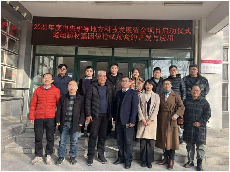 2024年1月4日下午,食品与药学院举行中央引导地方科技发展资金项目“道地药材基因快检试剂盒的开发与应用”启动仪式。该项目由禹州市厚生堂中药有限公司和食品与药学院共同申报,已获河南省科技厅立项。厚生堂总经理尹百灵、高级顾问主任药师杨霞,食品与药学院书记曹玉松、院长王德国、副院长肖付刚,以及部分教师和研究生参加启动仪式。