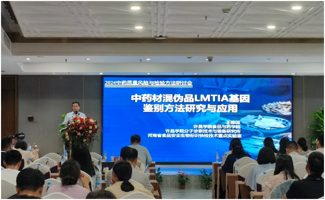 2024年9月20日,“2024中药质量风险与检验方法研讨会”在禹州市召开,本次大会由中国中药协会主办,河南省医药行业协会协办,旨在促进中药生产经营及使用单位把握行业发展导向、质量风险及风险防控方法,提高相关单位的质量管理和检验人员的专业素质和技术水平。我院收到邀请后,院长王德国带领副院长肖付刚、青年教师朱彦硕以及硕士研究生郝刚参会。会上王德国作了题为“中药材混伪品LMTIA基因鉴别方法研究与应用”的学术报告。