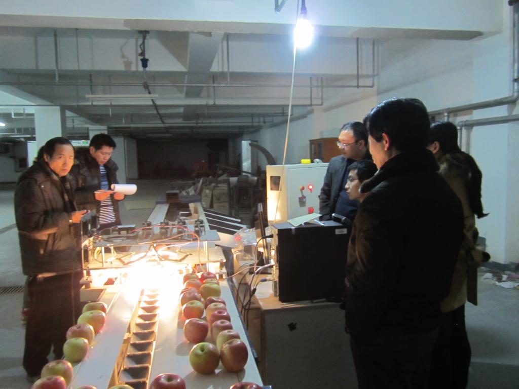 研制的果品综合品质无损智能分选设备样机及检验现场