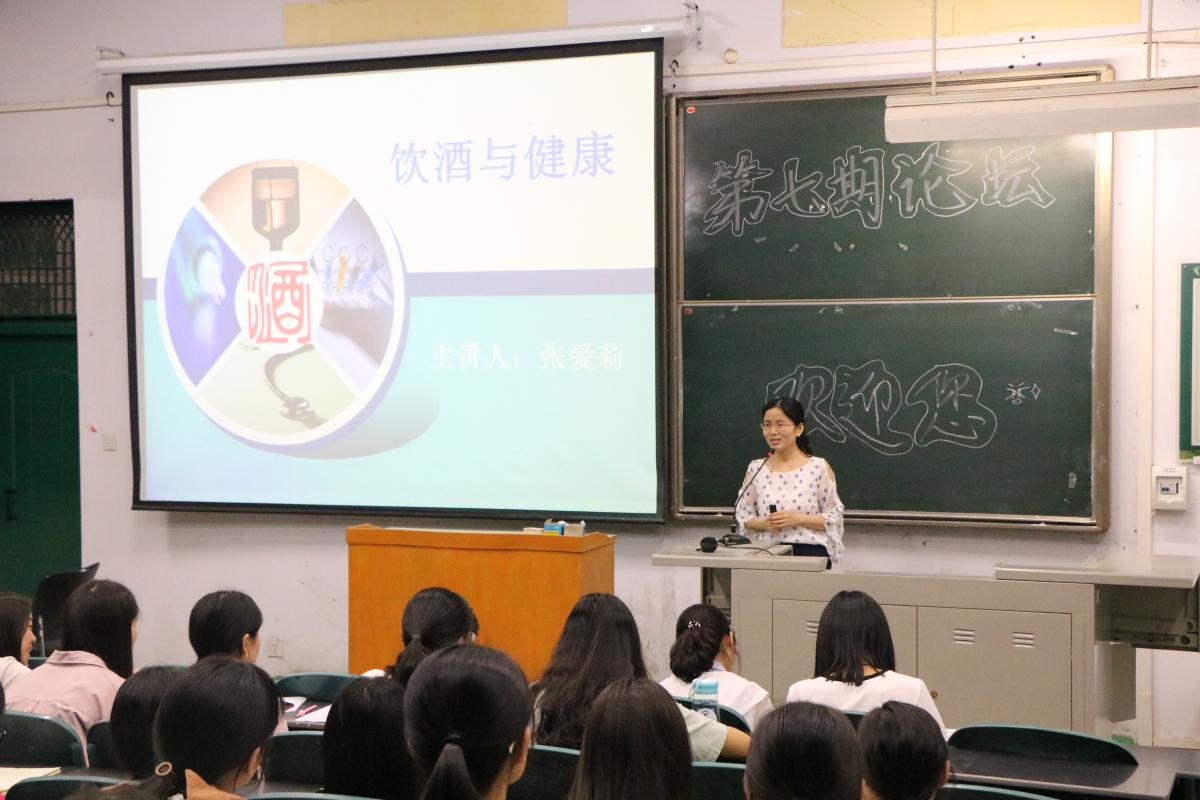 5月19日晚7点我院在A合十三成功举办主题为“饮酒与健康”的第七期素拓讲座。本次论坛特邀我院张爱莉老师作为主讲嘉宾,我院部分学生参加本次论坛。
